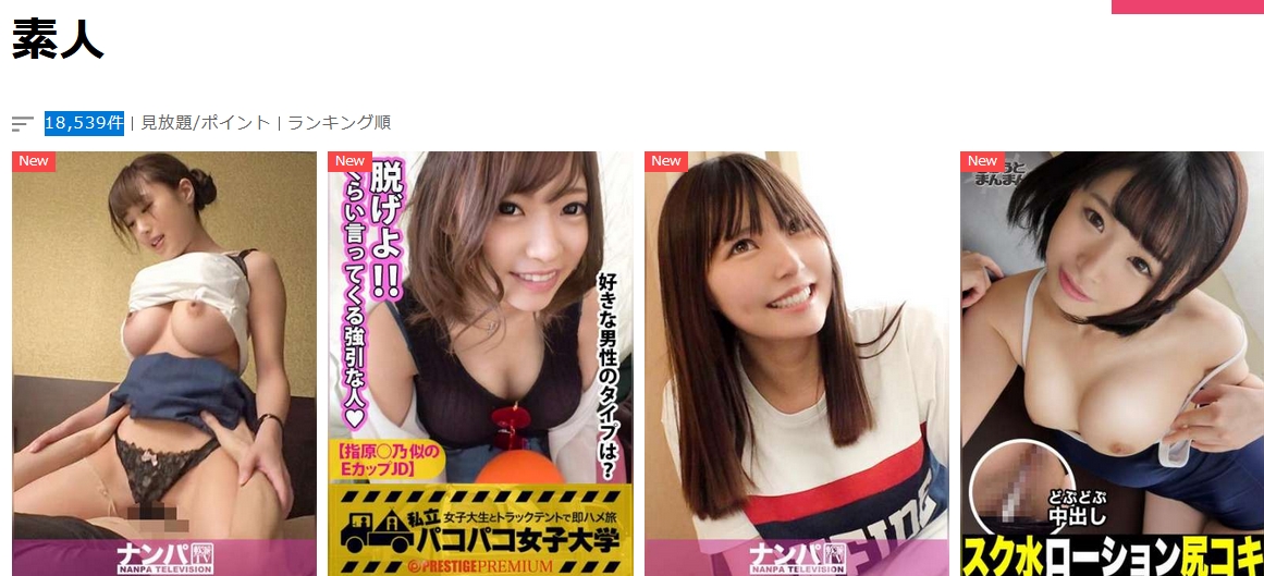 素人系の作品も18,539件万本以上が見放題で配信されていてかなり豊富です。