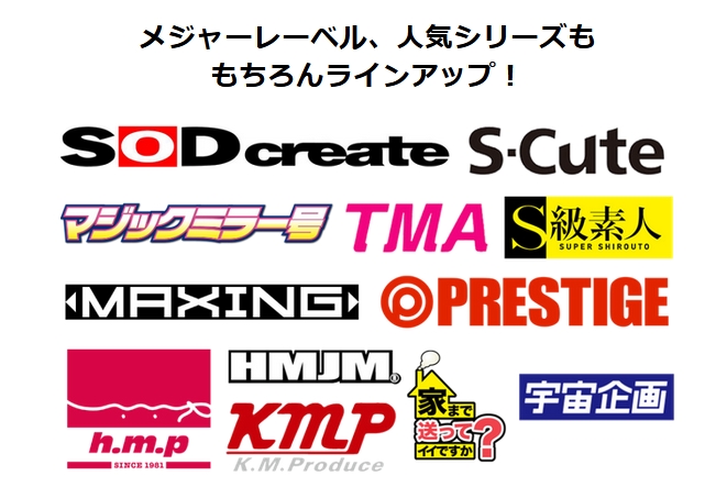 配信作品は「プレステージ」「SOD」「KMP」「S級素人」・・・といった国内人気AVレーベルの人気AV女優作品が多数配信されています。ジャンルもAV女優系から素人系、熟女系。盗撮系、ゲイ、レズと作品も豊富です。最新作に関してはPPV(単品課金)で見ることができます。